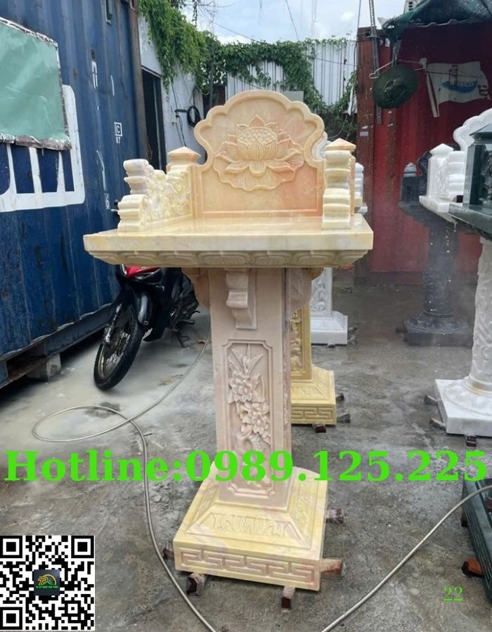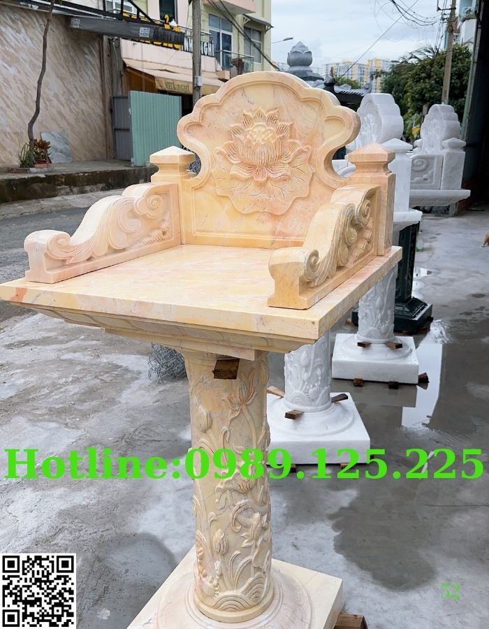 🌿 Thân Trụ Nâng Đỡ Tâm Linh: Nối liền từ chân bệ là thân trụ (hoặc cột), đây có thể là một khối đá hình hộp liền mạch hoặc các trụ tròn/vuông được điêu khắc công phu. Thân trụ là “xương sống” của bàn thờ, mang ý nghĩa kết nối giữa trời và đất. Trên bề mặt thân trụ, nghệ nhân thường chạm trổ các hình ảnh thiêng liêng như rồng cuốn, phượng bay, hoặc các biểu tượng của sự thịnh vượng, bảo hộ, thể hiện sự cầu kỳ và trang trọng của nơi thờ.