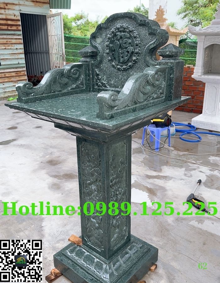 🌿 Phần Chân Bệ Vững Chãi: Nền tảng của toàn bộ công trình chính là chân bệ (hoặc đế), được chế tác từ khối đá đặc, có trọng lượng lớn. Phần này không chỉ có nhiệm vụ chịu lực, tạo sự ổn định tuyệt đối cho bàn thờ trước mọi tác động của thời tiết, mà còn là biểu tượng của sự kiên cố, vững vàng, kết nối trực tiếp với năng lượng của địa cầu. Các cạnh của chân bệ thường được chạm khắc những họa tiết đơn giản nhưng mang ý nghĩa trường tồn như mây cuộn hay hoa văn cách điệu.