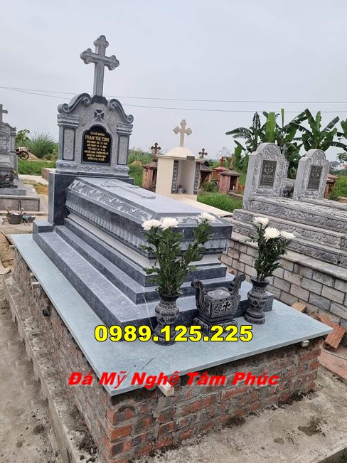 Mộ Đá Công Giáo Ba Mái: Được xây dựng với ba tầng mái, mẫu mộ này mang lại vẻ bề thế, trang trọng và là lựa chọn phổ biến cho những gia đình muốn thể hiện lòng thành kính đặc biệt với người đã khuất.