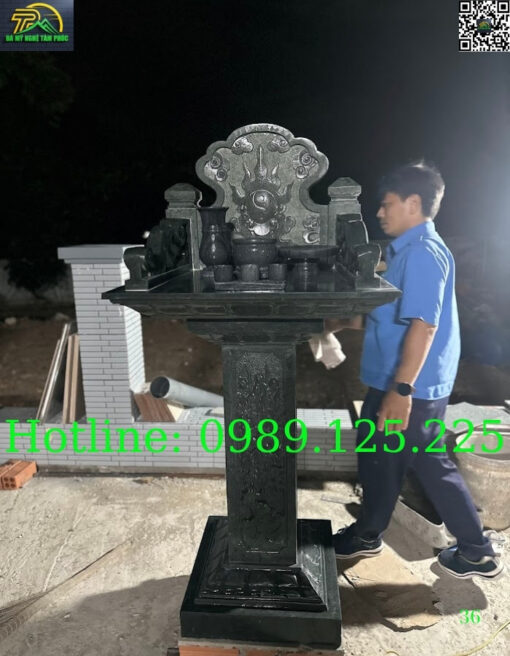 Mẫu Bàn Thờ Thiên Đá Đẹp Bán Tại Kon Tum của chúng tôi được chế tác từ đá tự nhiên nguyên khối, đảm bảo chất lượng vượt trội và độ bền vĩnh cửu. Mỗi sản phẩm không chỉ là sự kết hợp hoàn hảo giữa nghệ thuật điêu khắc tinh xảo mà còn là biểu tượng của sự tôn kính, tạo nên không gian thờ cúng trang nghiêm, linh thiêng cho gia đình bạn. Với thiết kế đa dạng và sang trọng, bàn thờ thiên đá của chúng tôi phù hợp với mọi không gian, từ đơn giản đến cầu kỳ, giúp nâng cao giá trị tâm linh và thẩm mỹ cho ngôi nhà.